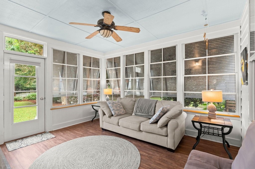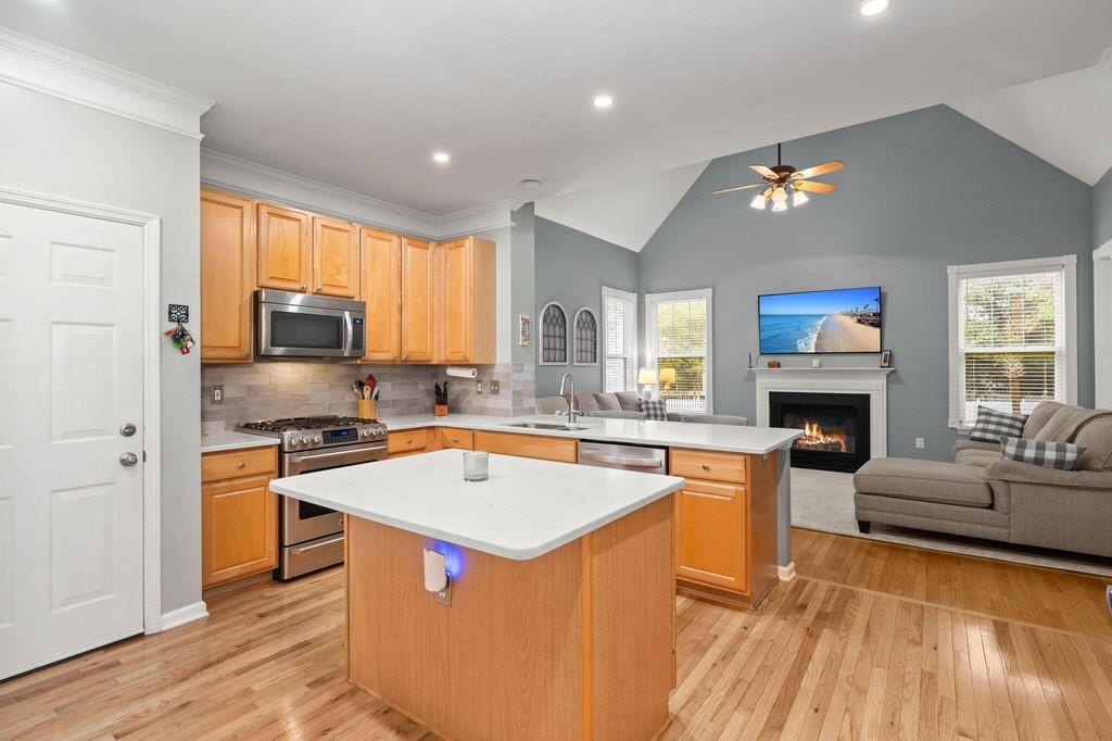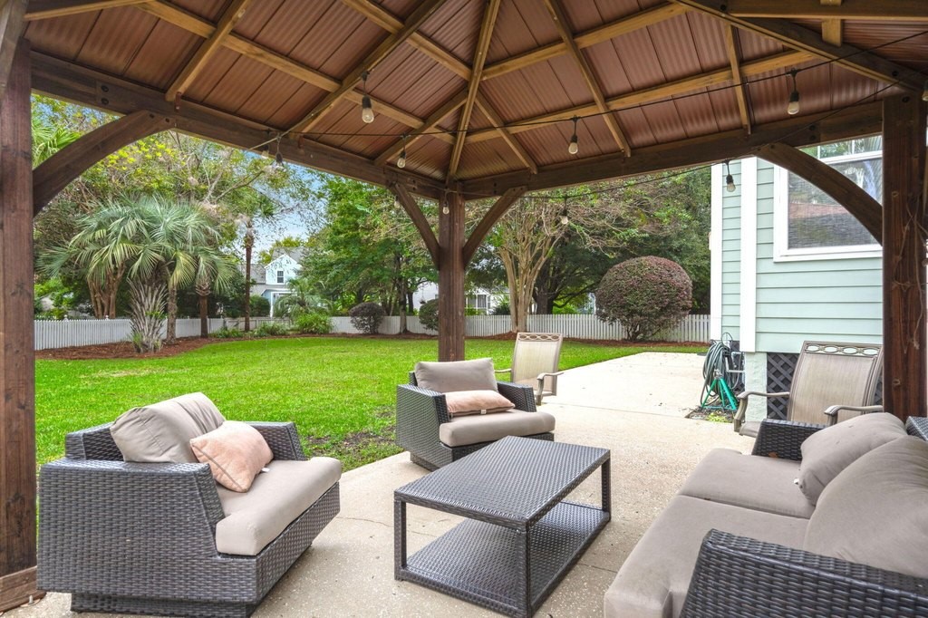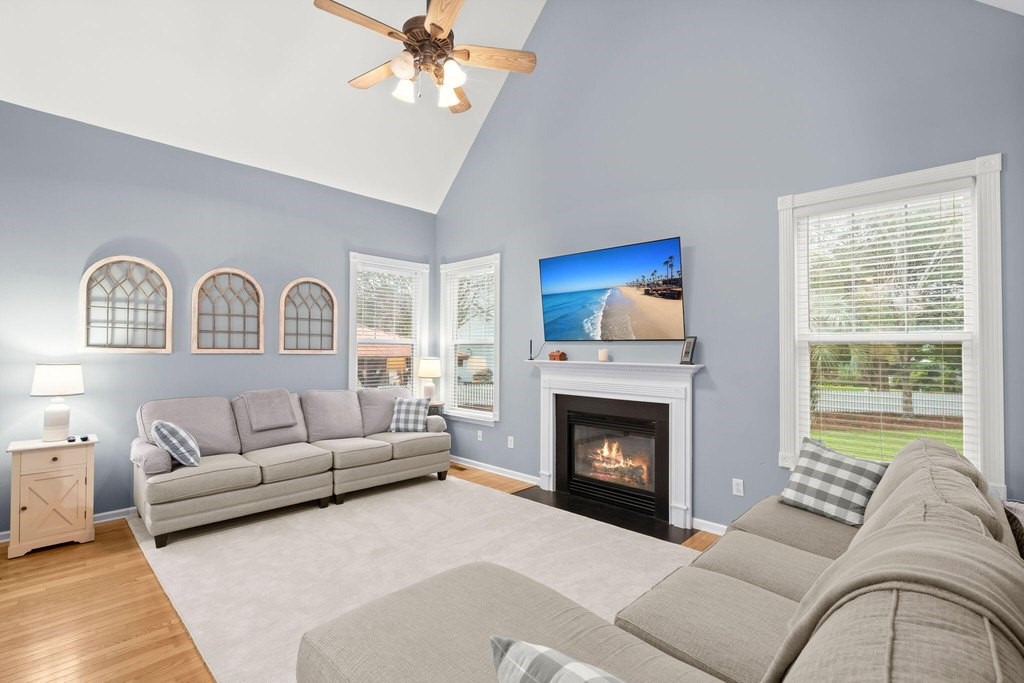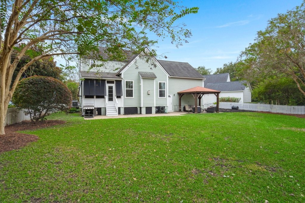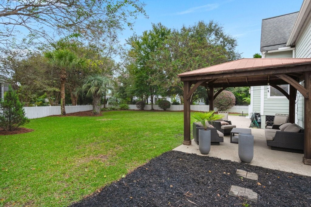Designed for effortless one-story living, the main level features a welcoming foyer that leads to a formal living room with a bay window, open to the dining room--creating a natural flow for entertaining. The airy family room boasts a vaulted ceiling, cozy gas fireplace, and seamless connection to the well-appointed kitchen with center island, gas cooktop, and casual counter seating.The highlight of the home is the first-floor primary suite, a private retreat, featuring a walk-in closet and an updated bath with dual-sink vanity, garden tub, and glass-enclosed shower--offering true main-level comfort and convenience.Upstairs, you'll find two spacious bedrooms with fresh paint and new carpet that share a full bath, along with a versatile loft ideal for an office, playroom, or media area.Beautiful hardwood floors run throughout the main living areas and the primary suite. Just off the family room, a porch with Eze-breeze windows (for three season living) opens to a patio with gazebo and a large fenced in backyardperfect for pets, play, outdoor entertaining and/or possibly a future pool. Mature palms and lush landscaping enhance the home's island charm. Additional features include an encapsulated crawlspace with dehumidifier, generous storage spaces (including areas above the garage and beneath the stairs), and an oversized two-car garage with room for a workbench or extra storage. Tucked on a quiet cul-de-sac, this immaculate move-in ready home offers the perfect blend of comfort and conveniencejust a short stroll from Etiwan Park, Daniel Island's six-acre hub for community events, sports, and gatherings. Conveniently close to schools, shopping, restaurants, pools, tennis and pickleball courts, walking trails, and multiple playgrounds, this home offers the ideal Daniel Island lifestyle. Buyer pays a one-time neighborhood enhancement fee of 0.5% of the sales price to the Daniel Island Community Fund at closing.